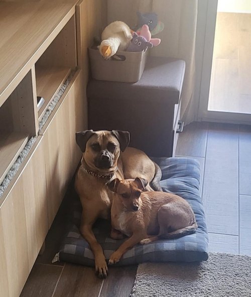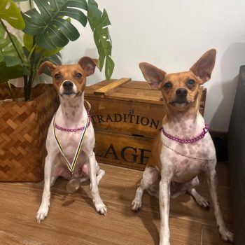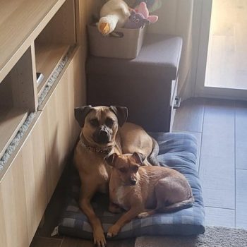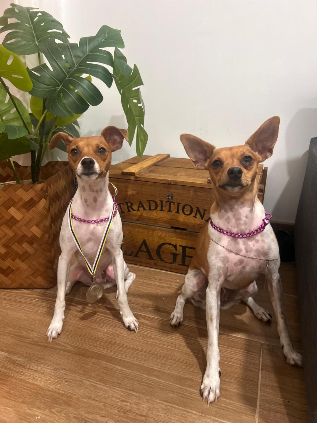 Estas preciosas perritas comparten la medalla … del abandono al paraíso de un hogar. No saben lo felices que somos en PSF.
